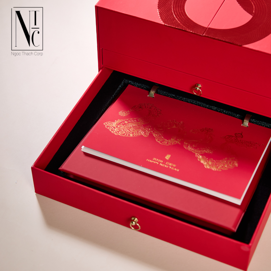 Khi mở hộp, những lời chúc năm mới và câu đối đỏ sẽ tự động hiện ra, như một lời chào xuân bất ngờ, ấn tượng.🔸 Bố cục ngăn nắp – Phụ kiện đi kèm đầy đủ:
