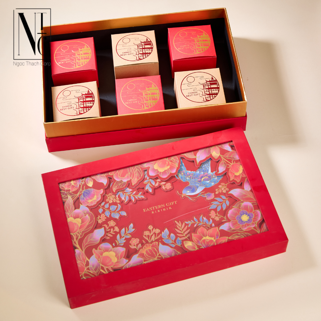 Hộp quà mang cảm hứng từ văn hóa Á Đông truyền thống, được thiết kế riêng theo yêu cầu – tạo nên sự khác biệt và đẳng cấp cho doanh nghiệp trong mùa lễ hội.